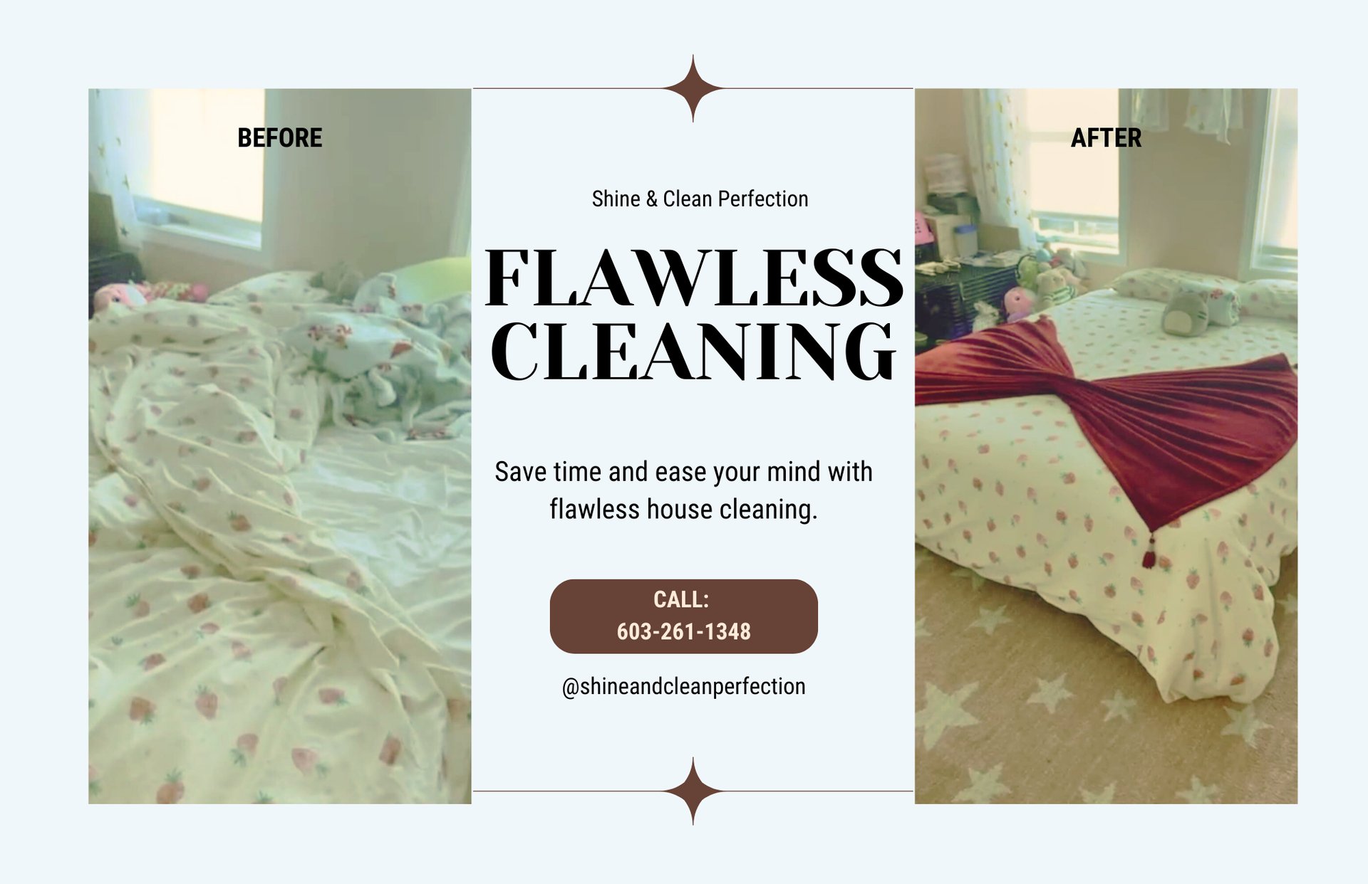 Pamela Sousa, the owner of Shine and Clean Perfection launched her business in January 2025. Her meticulous care and reliable services needed to be advertised as a testimony to her work. As part of our agreement, I developed the ad you see here and created a Facebook Business Page. In addition, videos and photos of Pamela's work were posted on the Facebook Page.